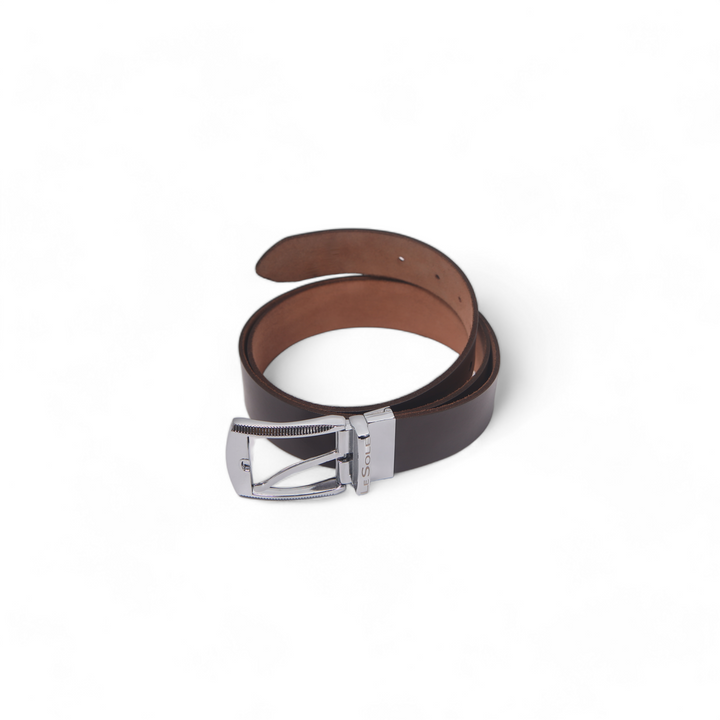 Rs 1,000.00This is a sleek and durable brown leather belt, crafted from high-quality genuine leather. The rich, warm brown tone gives it a timeless and versatile look, suitable for both casual and formal attire. The belt features a sturdy silver buckle with a polished finish, adding a touch of elegance and contrast to the rugged leather. The buckle's design is simple yet refined, ensuring it pairs well with various outfits.