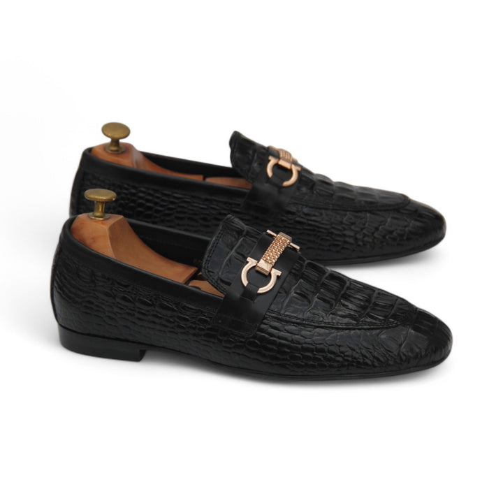 Elegant black patent leather slip-on shoes with a glossy finish, featuring a durable rubber sole for added comfort and grip. These shoes blend style and convenience, offering a polished look without the need for laces. Perfect for formal occasions or adding a touch of sophistication to a casual outfit, they are both sleek and practical.