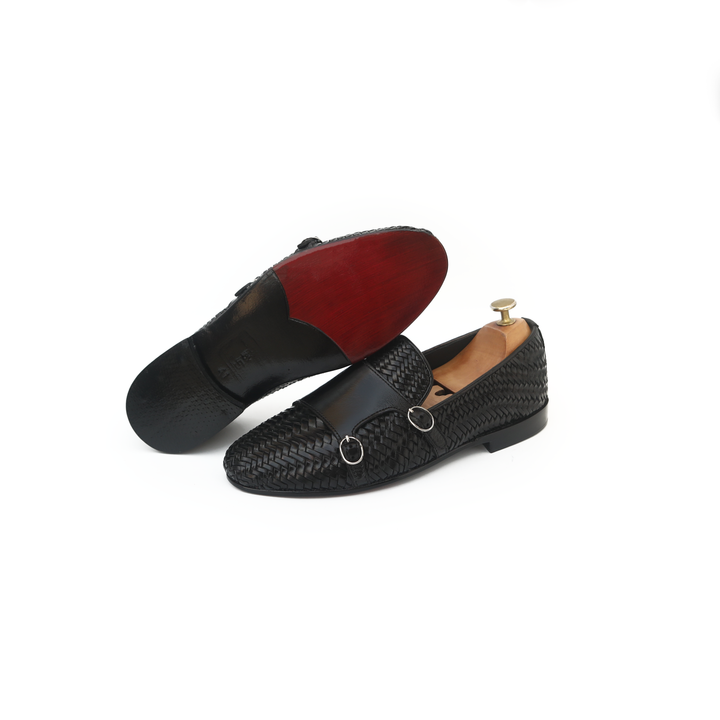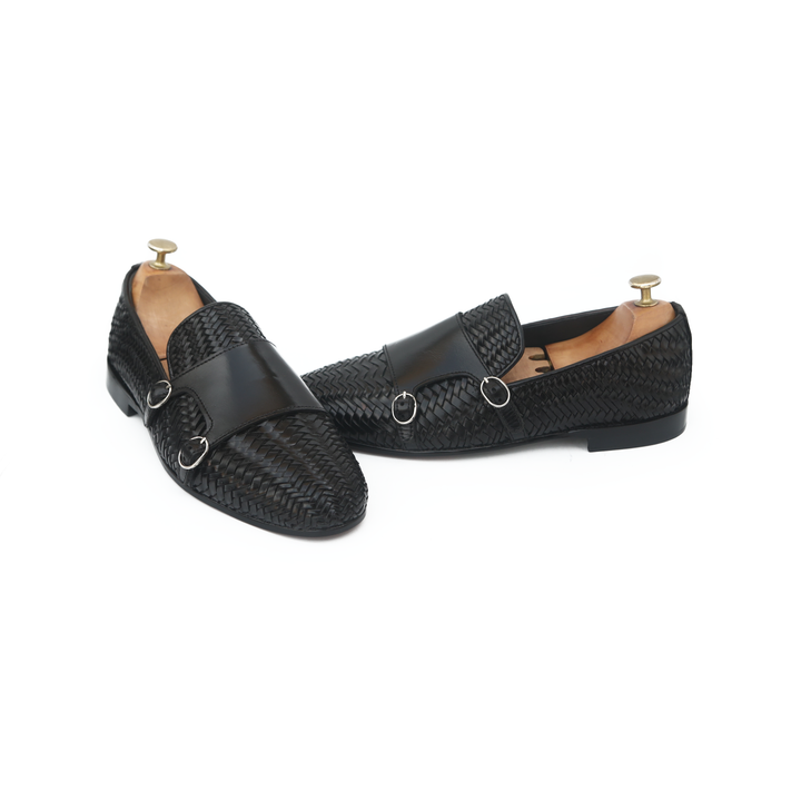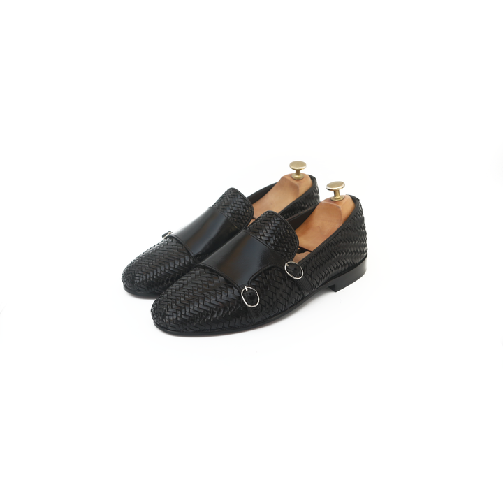 Black Woven leather with hand weaving adorned with monk strap as round shaped slip-ons. Leather Lining on the inside with an all leather cushioned foot bed. Each pair is carefully hand crafted using finest techniques that symbolises the craftsmanship of our brand.