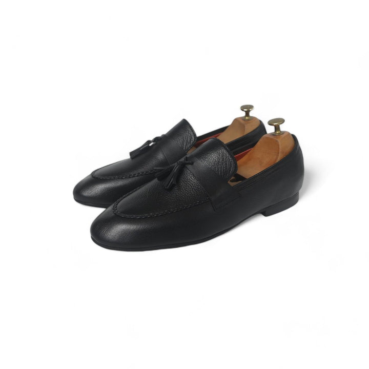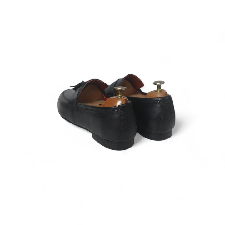 Black soft mild leather slip-ons that offer exceptional comfort and flexibility. The supple leather provides a relaxed fit, while the sleek design ensures a sophisticated appearance. Ideal for everyday wear, these slip-ons combine ease of use with a refined style, perfect for both casual and smart-casual settings.