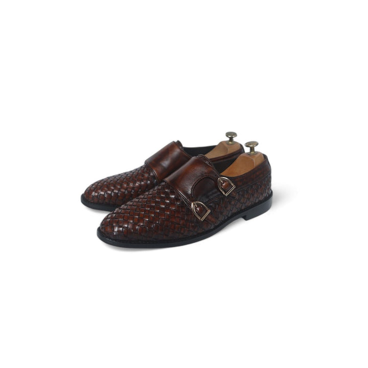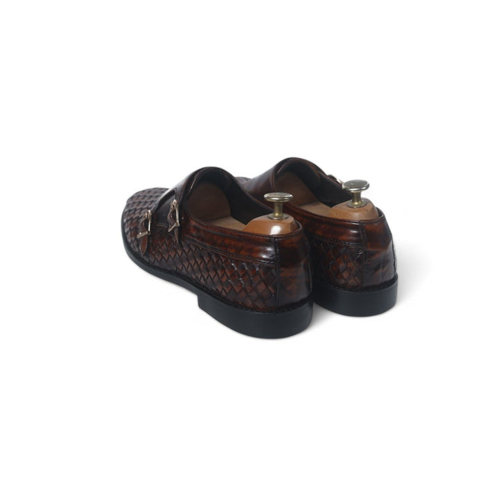 Elegant two tone brown woven leather shoes with a sophisticated design, featuring a full leather lining for comfort and a durable leather sole. The intricate woven pattern adds texture and visual interest, while the all-leather construction ensures quality and longevity. Perfect for adding a touch of refinement to both formal and casual outfits.