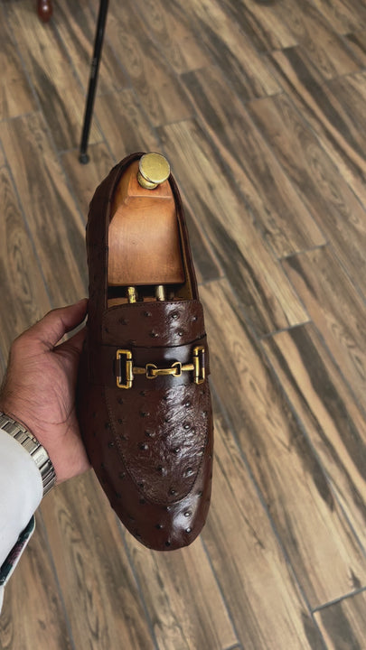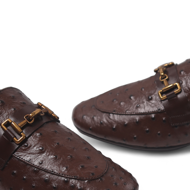 Brown shoes with a printed leather, featuring a durable rubber sole for comfort and grip. The distinctive printed adds a touch of luxury and texture, elevating the classic design. Perfect for adding a stylish edge to both formal and casual outfits, these shoes combine sophistication with practicality.