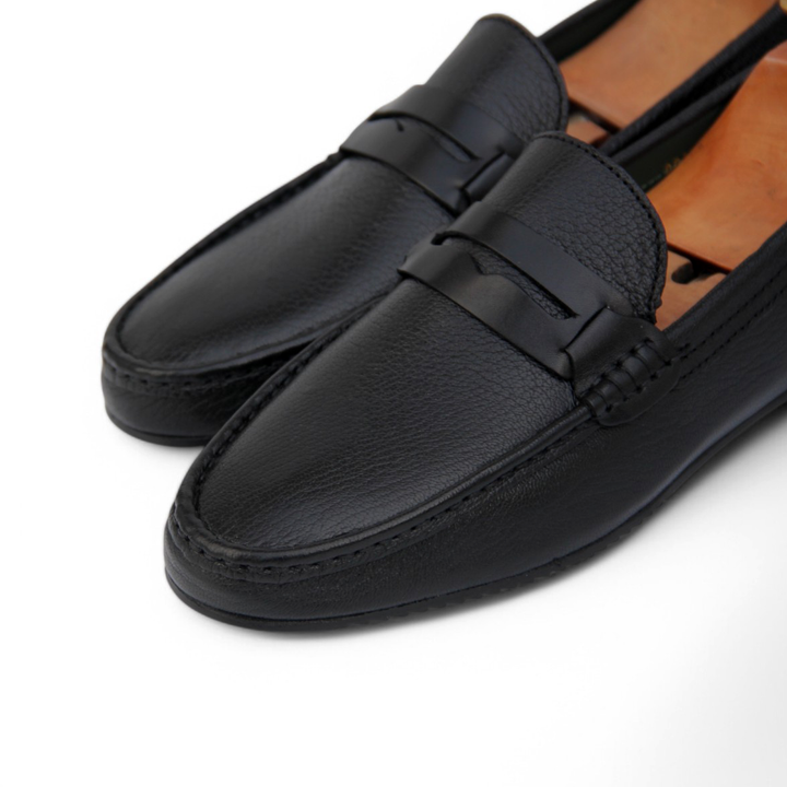 Loafer shoes with a leather upper, leather lining, and rubber sole offer a perfect blend of style, comfort, and durability. The leather upper provides a sleek and polished appearance, ensuring a sophisticated and timeless look suitable for both formal and casual occasions. The leather lining enhances breathability and comfort, allowing for a soft and luxurious feel against the skin. Meanwhile, the rubber sole ensures excellent grip, flexibility, and shock absorption, making these loafers ideal for all-day wear. Whether paired with tailored trousers or smart-casual outfits, these loafers offer a refined yet practical footwear choice.