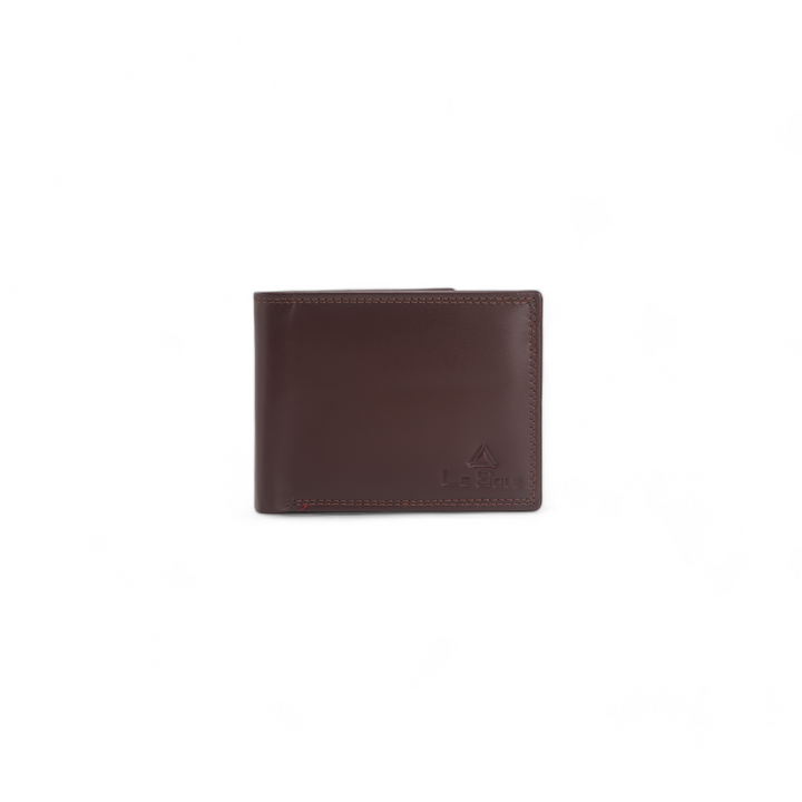 A sleek brown leather wallet with a slim design, featuring multiple card slots, a cash compartment, and a secure ID window. Crafted from premium leather with finely stitched edges, it's durable and stylish for any occasion.
