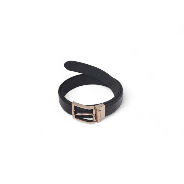 Rs 825.00This elegant black leather belt is crafted from high-quality genuine leather, offering a sleek and timeless look. The deep black color makes it incredibly versatile, suitable for both formal and casual wear. The belt is highlighted by a luxurious golden buckle, which adds a touch of sophistication and contrast to the design. The buckle has a polished, gleaming finish, providing a refined accent against the black leather. Reinforced stitching along the edges enhances durability, ensuring that this belt remains a staple in your wardrobe for years to come. Ideal for those seeking a classic yet bold accessory.