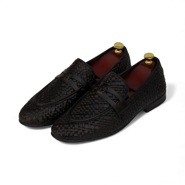 Designed for elegance and comfort, these shoes feature a knitted leather upper for a sleek, refined look and a leather lining for breathability and plush feel. The flexible rubber sole provides excellent grip and all-day ease, making them perfect for both professional and social occasions.