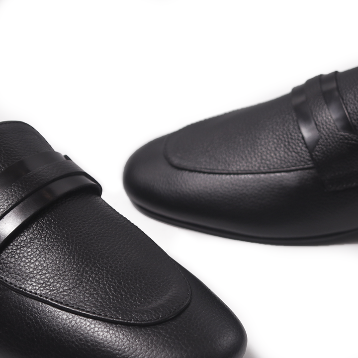 Black soft mild leather slip-ons that offer exceptional comfort and flexibility. The supple leather provides a relaxed fit, while the sleek design ensures a sophisticated appearance. Ideal for everyday wear, these slip-ons combine ease of use with a refined style, perfect for both casual and smart-casual settings.