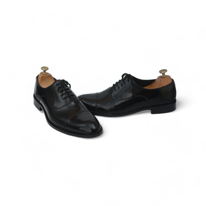 Classic black leather lace-up shoes with a sleek and timeless design. Crafted from premium leather, these shoes offer a polished finish and a comfortable fit. The sturdy laces ensure a secure closure, while the durable sole provides long-lasting wear. Perfect for formal occasions and professional settings, these shoes are a versatile wardrobe staple.