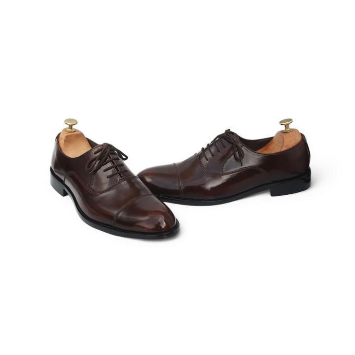 Classic two tone brown leather lace-up shoes with a sleek and timeless design. Crafted from premium leather, these shoes offer a polished finish and a comfortable fit. The sturdy laces ensure a secure closure, while the durable sole provides long-lasting wear. Perfect for formal occasions and professional settings, these shoes are a versatile wardrobe staple.