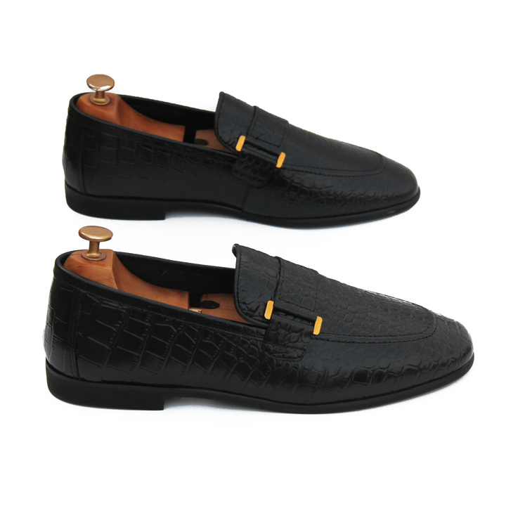 Step up your style with these premium croc-printed textured leather loafers. Designed for a bold and refined look, they offer a sleek finish, comfortable inner lining, and a durable sole—perfect for both formal and smart-casual outfits.