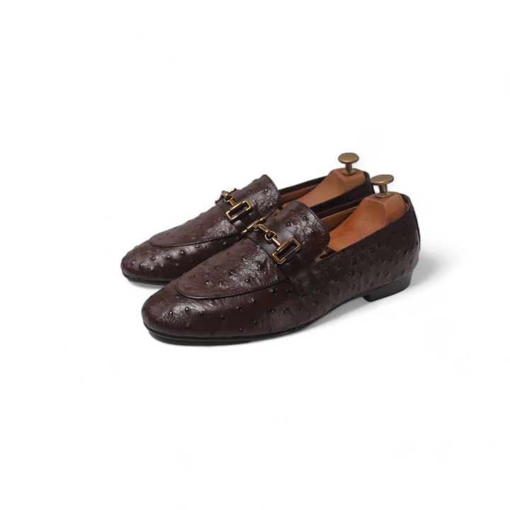 Brown shoes with a printed leather, featuring a durable rubber sole for comfort and grip. The distinctive printed adds a touch of luxury and texture, elevating the classic design. Perfect for adding a stylish edge to both formal and casual outfits, these shoes combine sophistication with practicality.