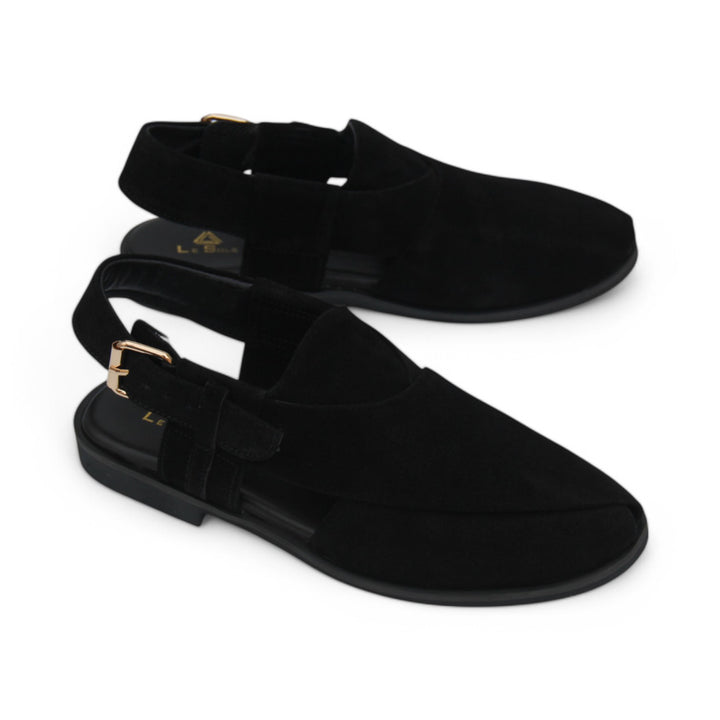 A traditional leather Peshawari chappal, known for its comfort and durability, crafted from high-quality leather. This iconic footwear features a sturdy sole and a broad strap design that wraps around the foot, providing a secure fit. The open-toe style allows for breathability, making it ideal for warm climates. The Peshawari chappal is a blend of cultural heritage and timeless style, perfect for both casual and formal wear. Its hand-stitched detailing adds a touch of craftsmanship, making it a classic addition to any wardrobe.