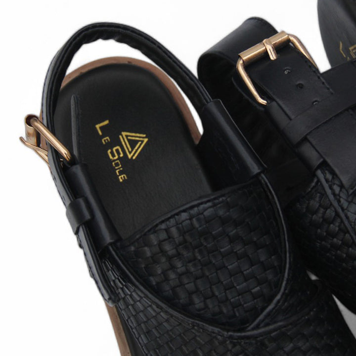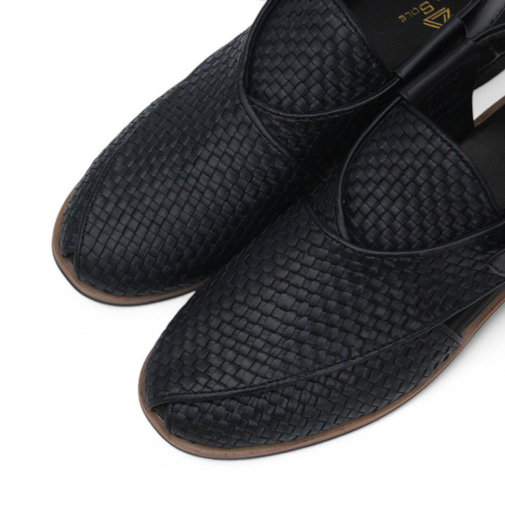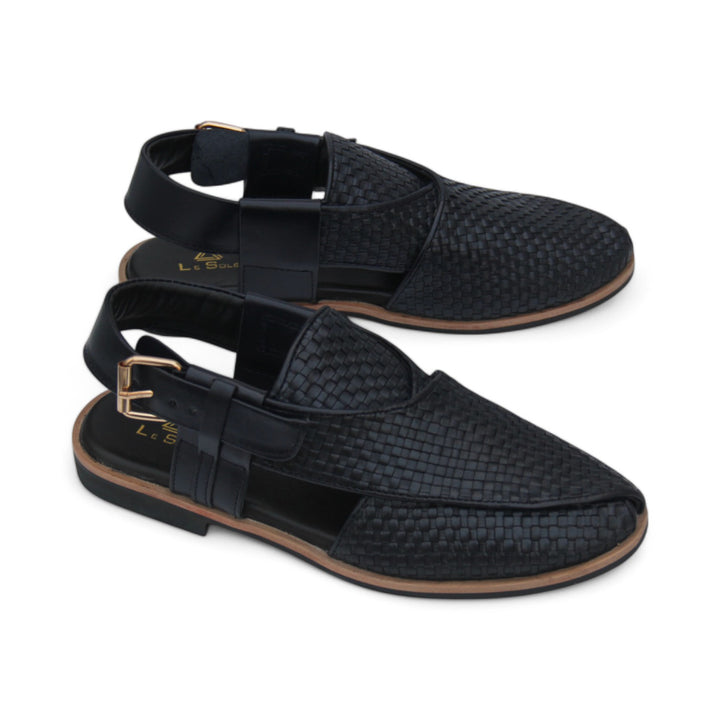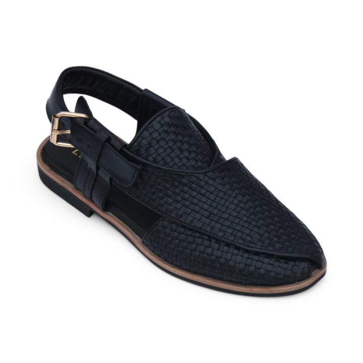 A traditional leather Peshawari chappal, known for its comfort and durability, crafted from high-quality leather. This iconic footwear features a sturdy sole and a broad strap design that wraps around the foot, providing a secure fit. The open-toe style allows for breathability, making it ideal for warm climates. The Peshawari chappal is a blend of cultural heritage and timeless style, perfect for both casual and formal wear. Its hand-stitched detailing adds a touch of craftsmanship, making it a classic addition to any wardrobe.