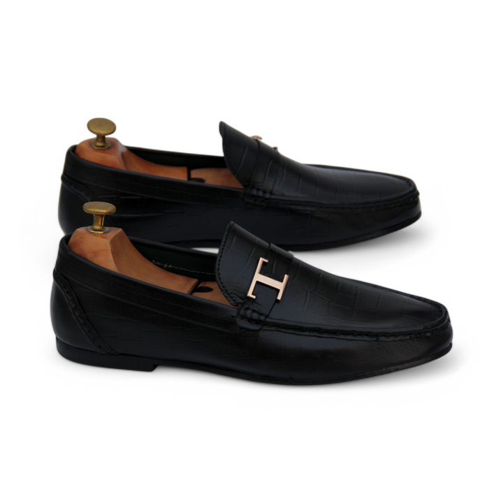 Loafer shoes with a leather upper, leather lining, and rubber sole offer a perfect blend of style, comfort, and durability. The leather upper provides a sleek and polished appearance, ensuring a sophisticated and timeless look suitable for both formal and casual occasions. The leather lining enhances breathability and comfort, allowing for a soft and luxurious feel against the skin. Meanwhile, the rubber sole ensures excellent grip, flexibility, and shock absorption, making these loafers ideal for all-day wear. Whether paired with tailored trousers or smart-casual outfits, these loafers offer a refined yet practical footwear choice.