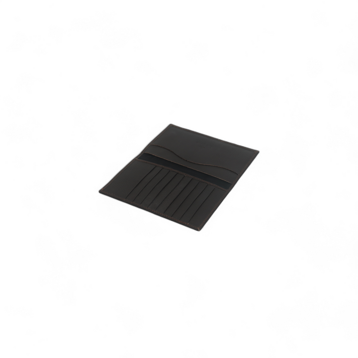 This brown leather wallet is crafted from soft, mild leather, offering a sleek and minimalist design. The exterior has a smooth, supple texture that feels comfortable to the touch, with a slight sheen that enhances its elegant appearance. Inside, the wallet features multiple compartments for cards, a spacious billfold section, and a secure coin pocket. The stitching is clean and discreet, complementing the overall refined look. It's a perfect blend of style and functionality, making it an ideal accessory for both casual and formal occasions.